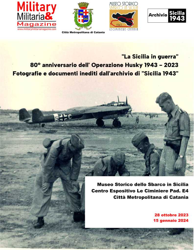 Sabato 28 di ottobre, presso il complesso delle Ciminiere di Catania, nel daglione E4, si aprirá al pubblico la mostra fotografica-documentale «La Sicilia in Guerra. 80º Anniversario dell’Operazione Husky 1943 – 2023. Fotografie e documenti inediti dell’Archivio Sicilia 1943». Organizzata dalla rivista Military&Militaria Magazine, #archiviosicilia1943 e dal Museo storico dello sbarco in Sicilia – 1943. Catania. Alle 16,30 apriremo al pubblico una saletta interna al Museo dello Sbarco con i documenti inediti dell’Archivio Sicilia 1943, e alle 17 realizzaremo una visita guidata alla mostra con a seguire la presentazione del catalogo della mostra e dell’ultima rivista di Military&Militaria Magazine dedicata all’80º anniversario dello sbarco in Sicilia. Contaremo con la presenza di alcuni degli autori tra cui Giuliano Artpapel Camilleri Umberto Lugnan e Luciano Giuffrida.