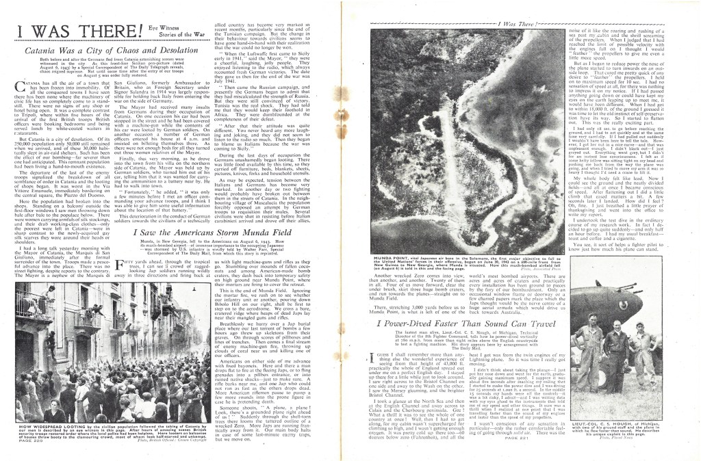 Per la sua periodicità di quindicinale The War Illustrated, generalmente riporta le informazioni dei fronti di battaglia con circa 15 – 30 giorni di differenza, proprio per questo motivo, i numeri dedicati allo sbarco in Sicilia sono il n°160 del 6 di agosto 1943, n° 161 del 20 di agosto del 1943, e il n°162 del 3 di settembre del 1943, dedicato alla conquista di Catania. Nel n° 162, ritroviamo le più famose foto che riguardano la battaglia della Piana di Catania, del ponte di Primosole, con l’ingresso delle truppe britanniche a Catania e altre immagini che sono oramai parte dell’immagine di quell’agosto catanese del 1943…